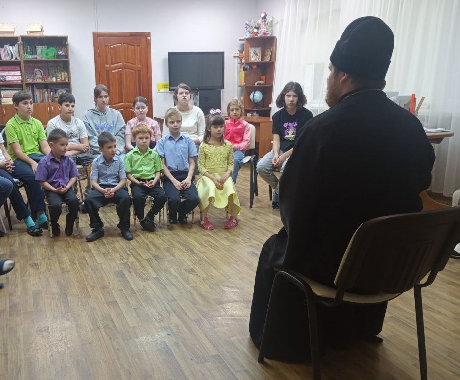 Ребята услышали от священника о празднике, задали ему вопросы о Православной вере, о вечной жизни, о том, как вести себя в храме. Отец Стефан рассказал им об Ангельских чинах, об Архистратиге Божием Михаиле, а еще о том, как Бог посылал Ангелов к людям, привел примеры из Ветхого и Нового Заветов.