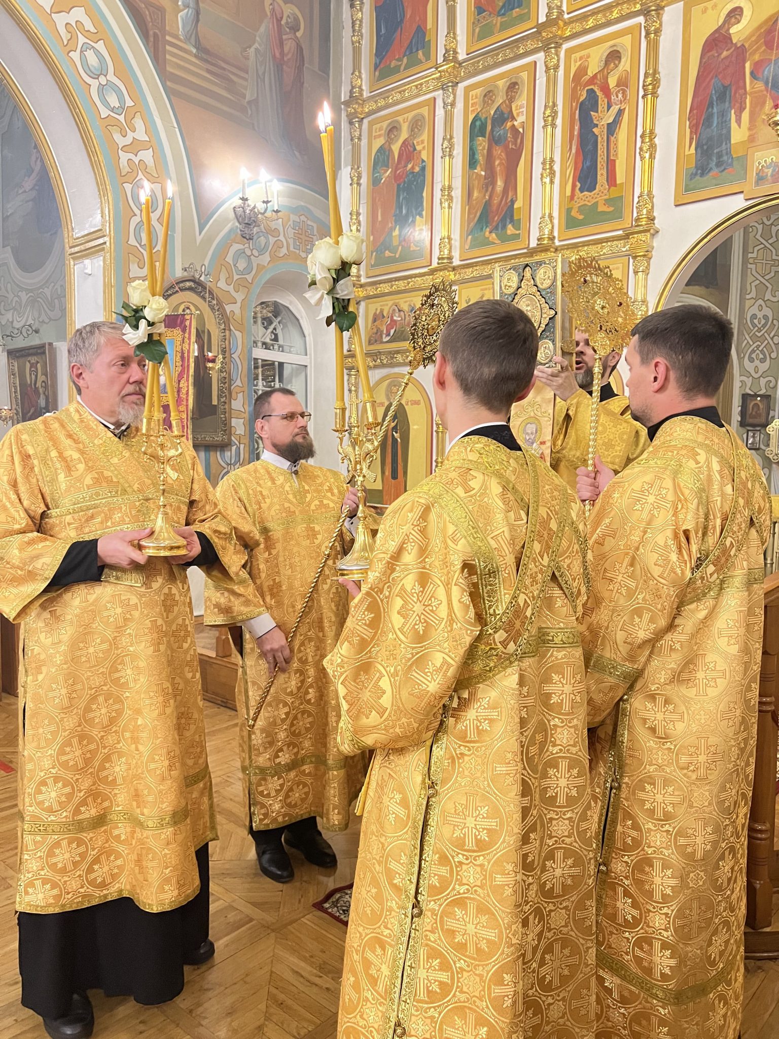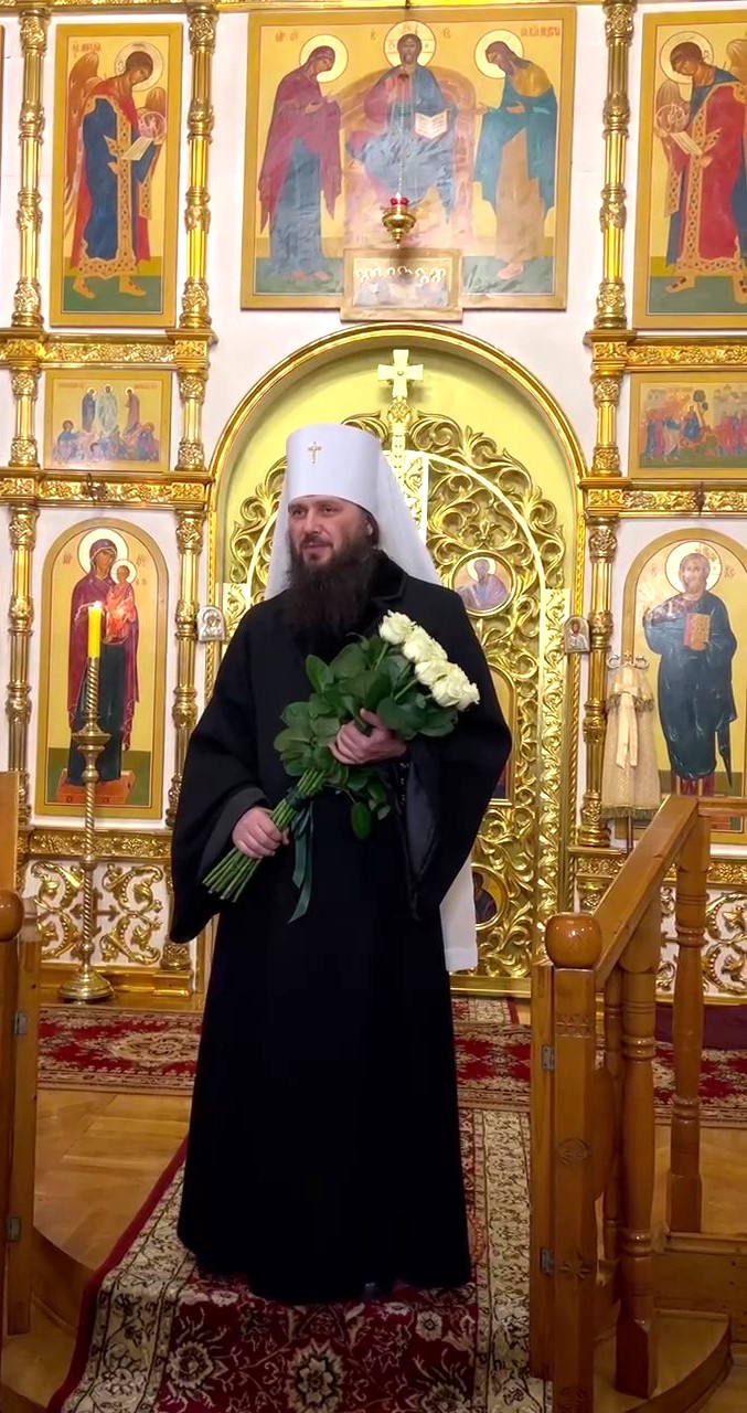 — Ваше Высокопреосвященство, дорогой Владыка! Позвольте Вас поздравить с престольным праздником Свято-Никольского храма и поблагодарить за совершение сегодняшнего богослужения. Оно было очень торжественным и радостным, особенно когда весь храм пел величание, когда пелся акафист. Желаем Вам доброго здравия и многая и благая лета!