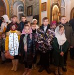 Владыку встретили воспитанники воскресной школы Свято-Никольского храма.