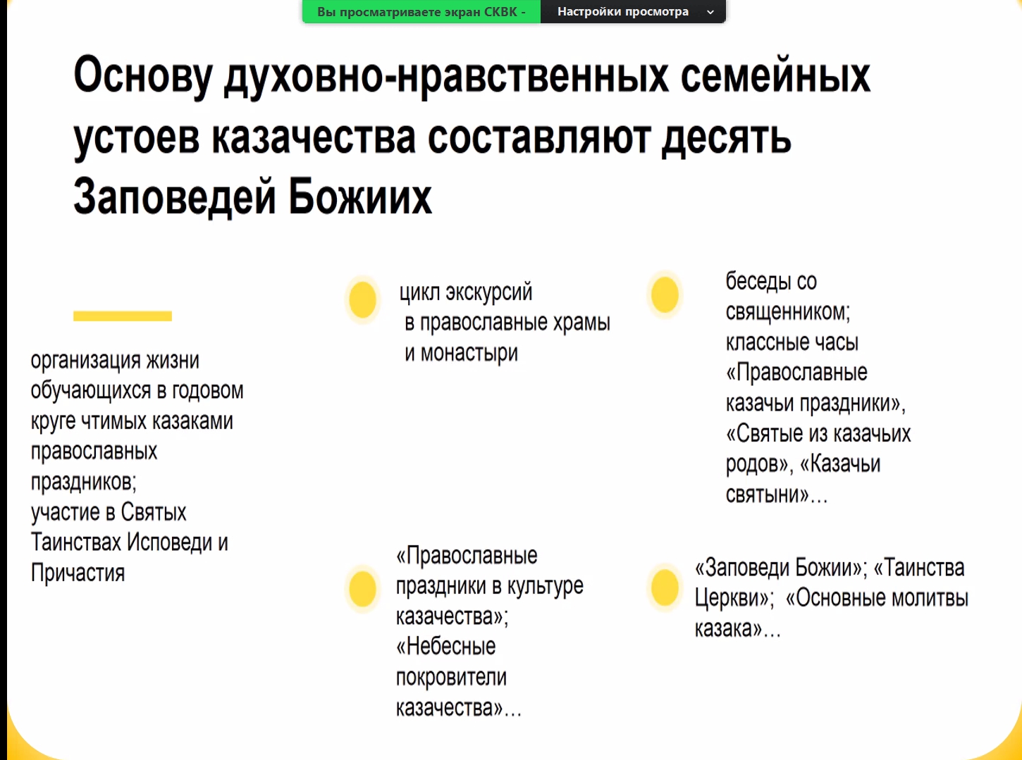 В рамках вебинара был проведен обзор деятельности епархиальных Отделов по взаимодействию с казачеством, представленный ответственным секретарем СКВК иереем Тимофеем Чайкиным.