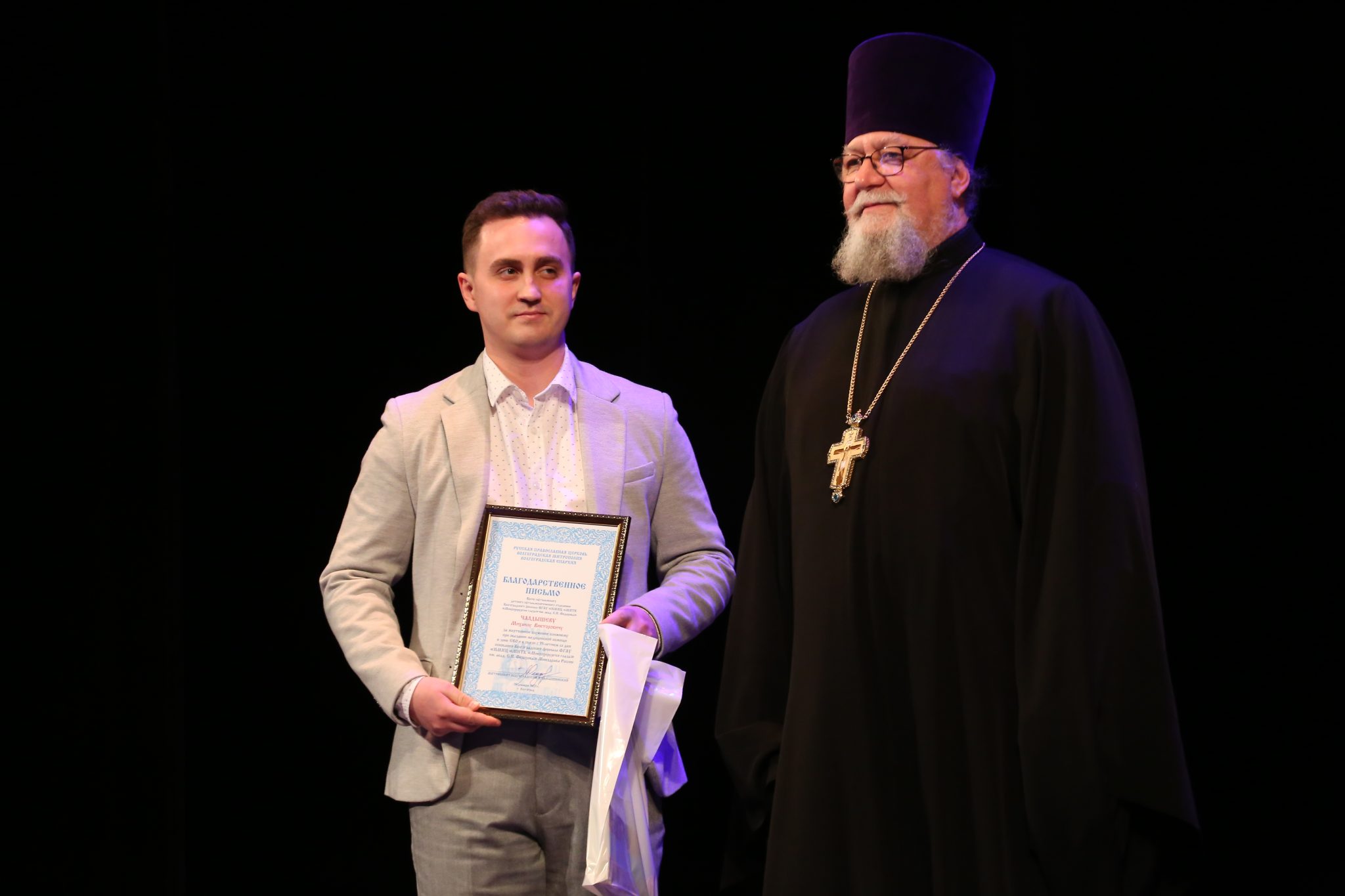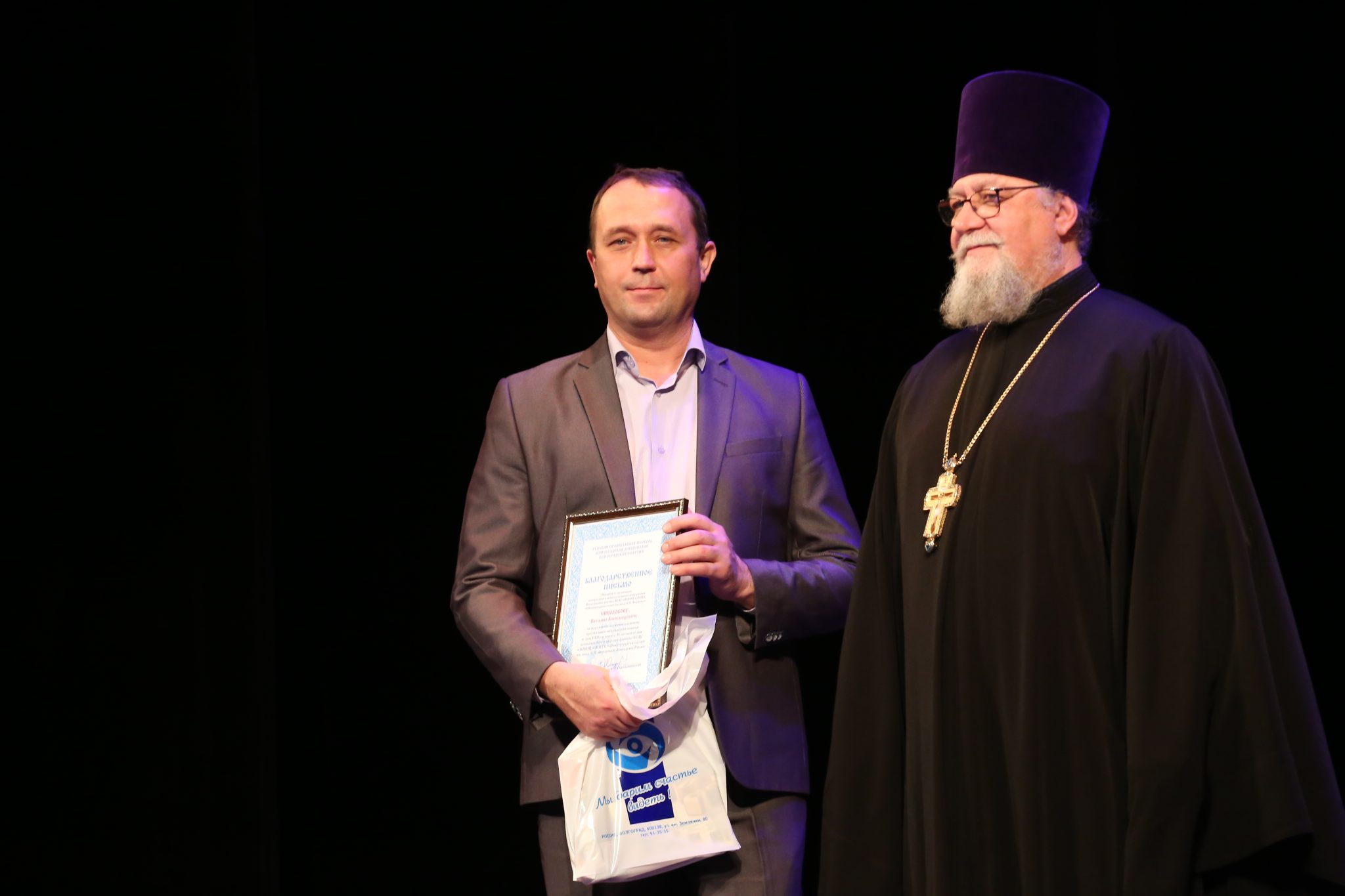 От Волгоградской епархии в торжественном мероприятии приняли участие благочинный Волгоградского округа протоиерей Анатолий Безбородов и ответственный за больничное служение Отдела по церковной благотворительности и социальному служению Волгоградской епархии иерей Игорь Лебедев.
