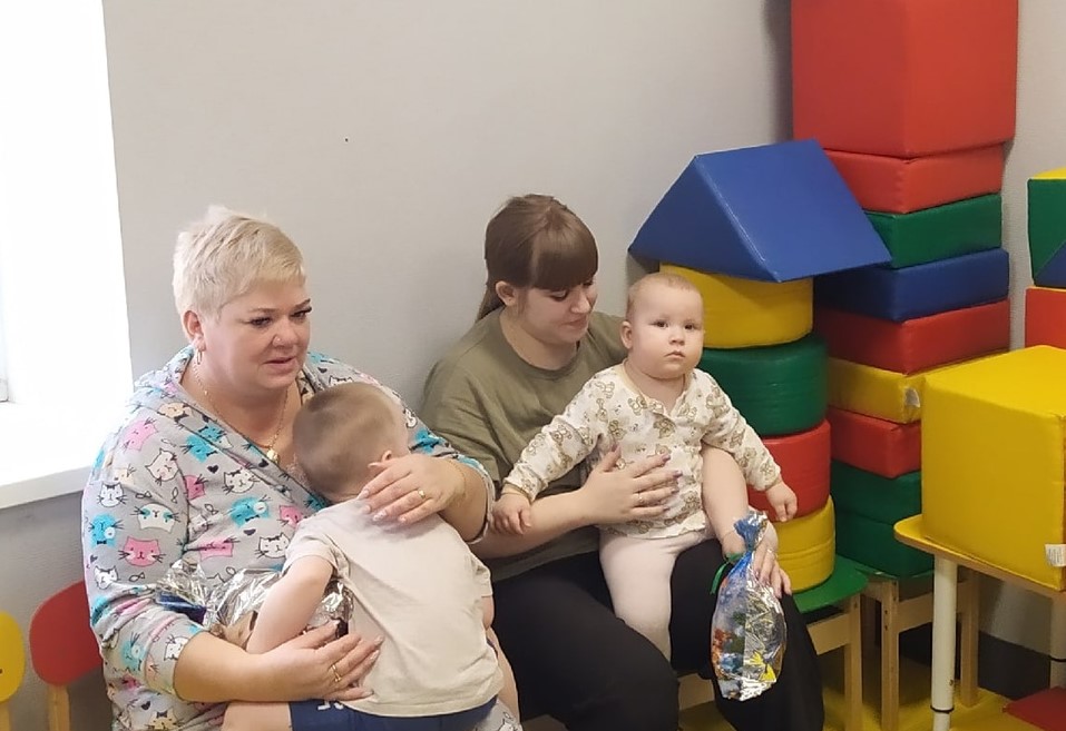 Людмила Лосева и Марина Афанасьева исполнили для маленьких пациентов тропарь и кондак праздника, а также Рождественские колядки. Отец Константин поздравил детей и их родителей с Рождеством Господа нашего Иисуса Христа и вручил им сладкие подарки.