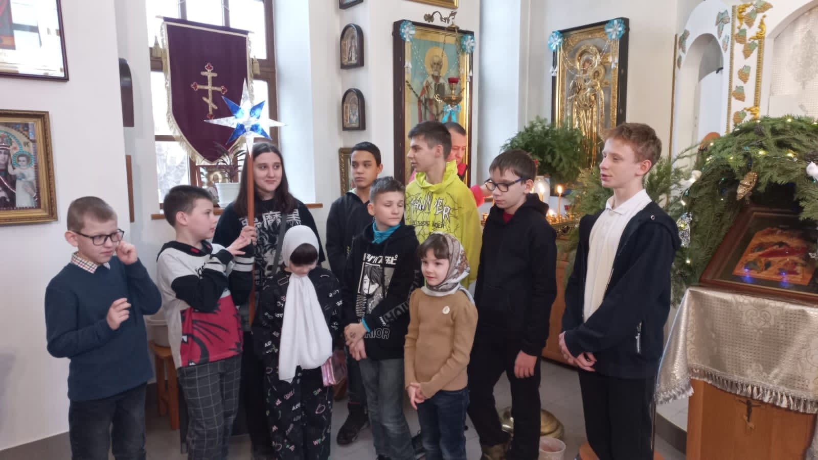 Ребята воскресной группы «АДМИРАЛЪ» с преподавателями собрались на территории храма, чтобы прославить Христа. «Рождество Христово — особенный праздник, наполненный радостью и любовью, — сказал настоятель иерей Евгений Караваев. — Пусть этот светлый праздник принесет вам мир, благополучие и счастье! Да наполнит родившийся Христос ваш дом теплом и светом, а сердце — радостью и любовью. Пусть ваша жизнь наполнится добром».