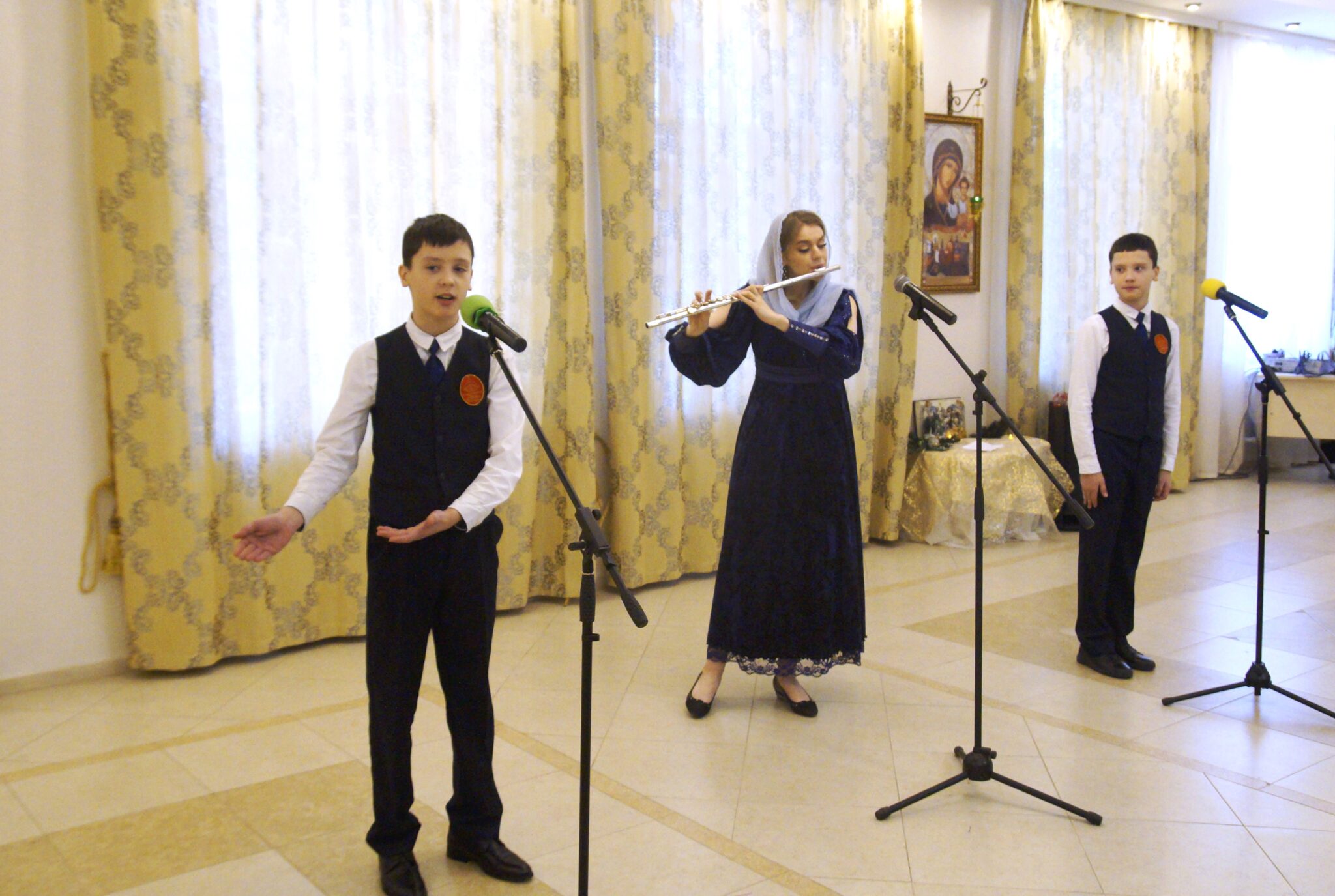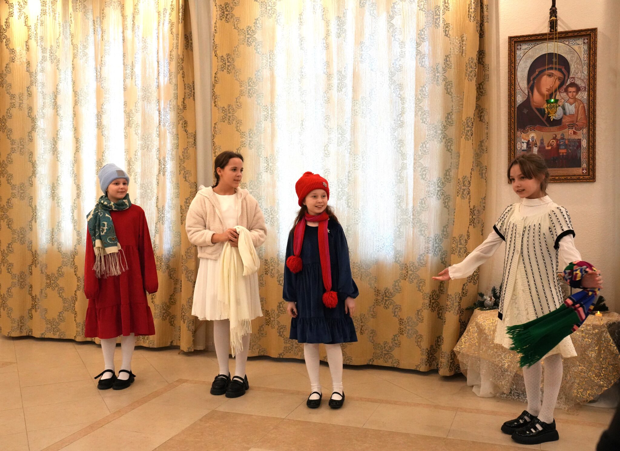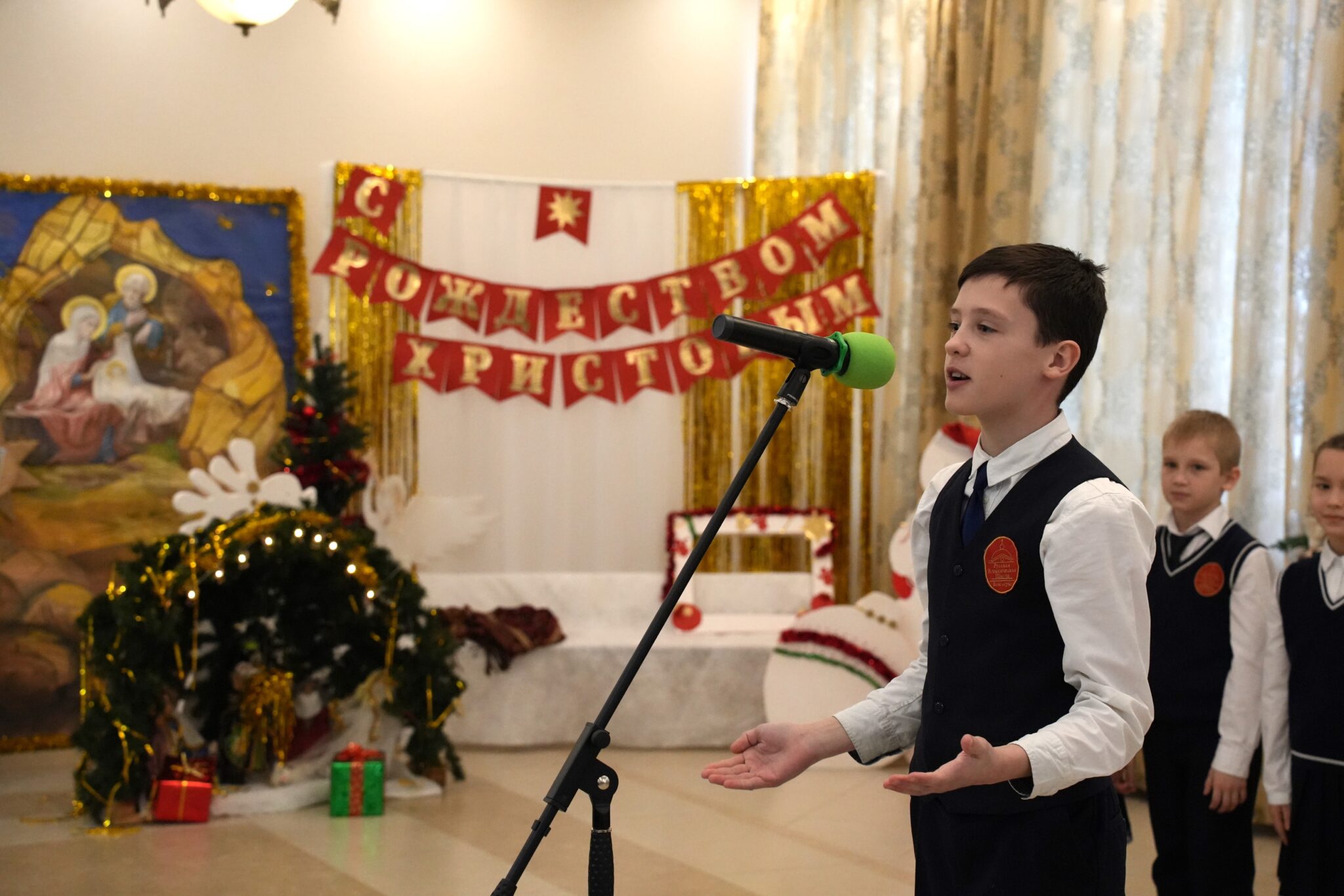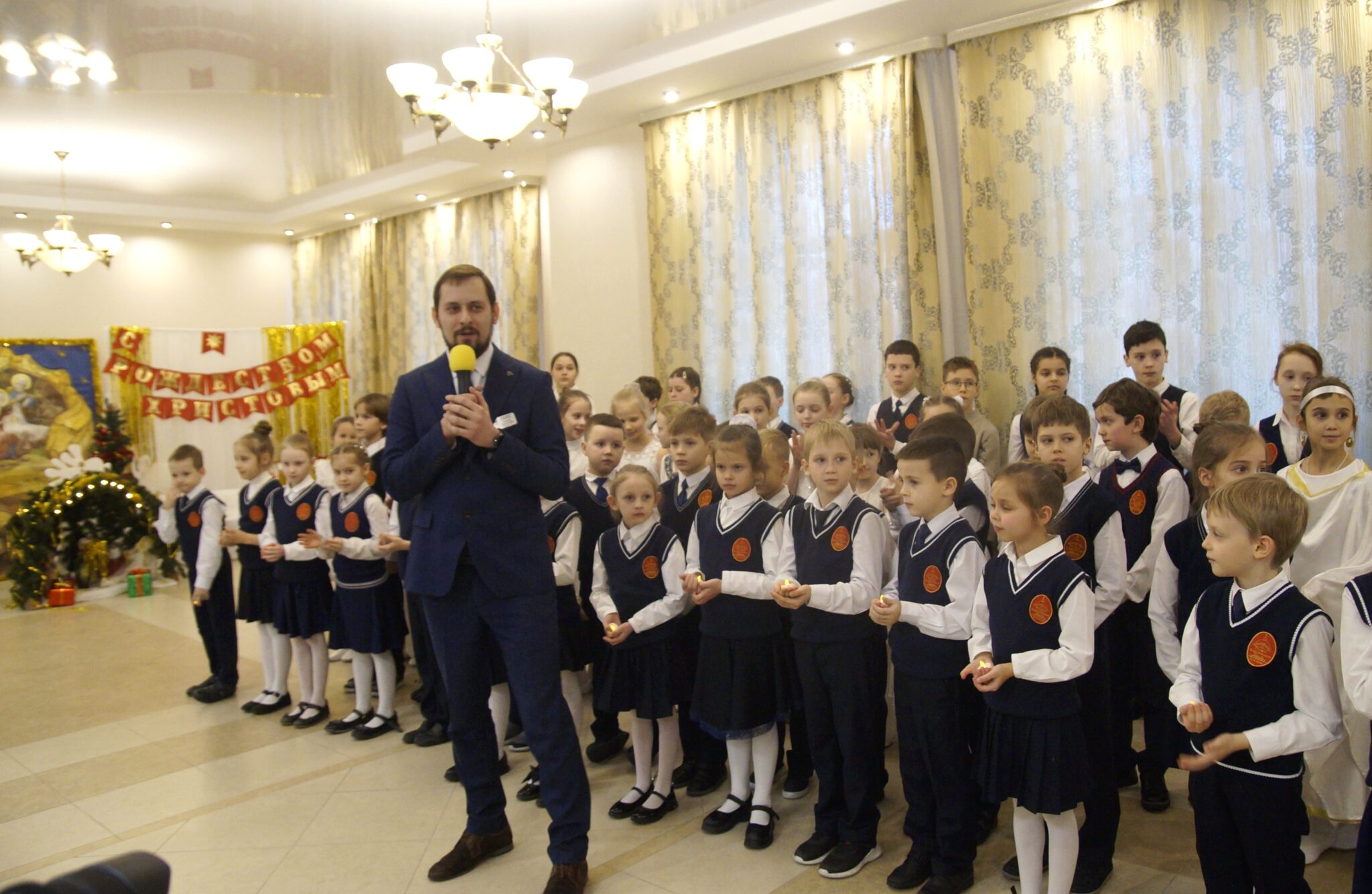 В начале праздника юные певчие сводного церковного хора Центра исполнили тропарь и кондак праздника Рождества Христова.