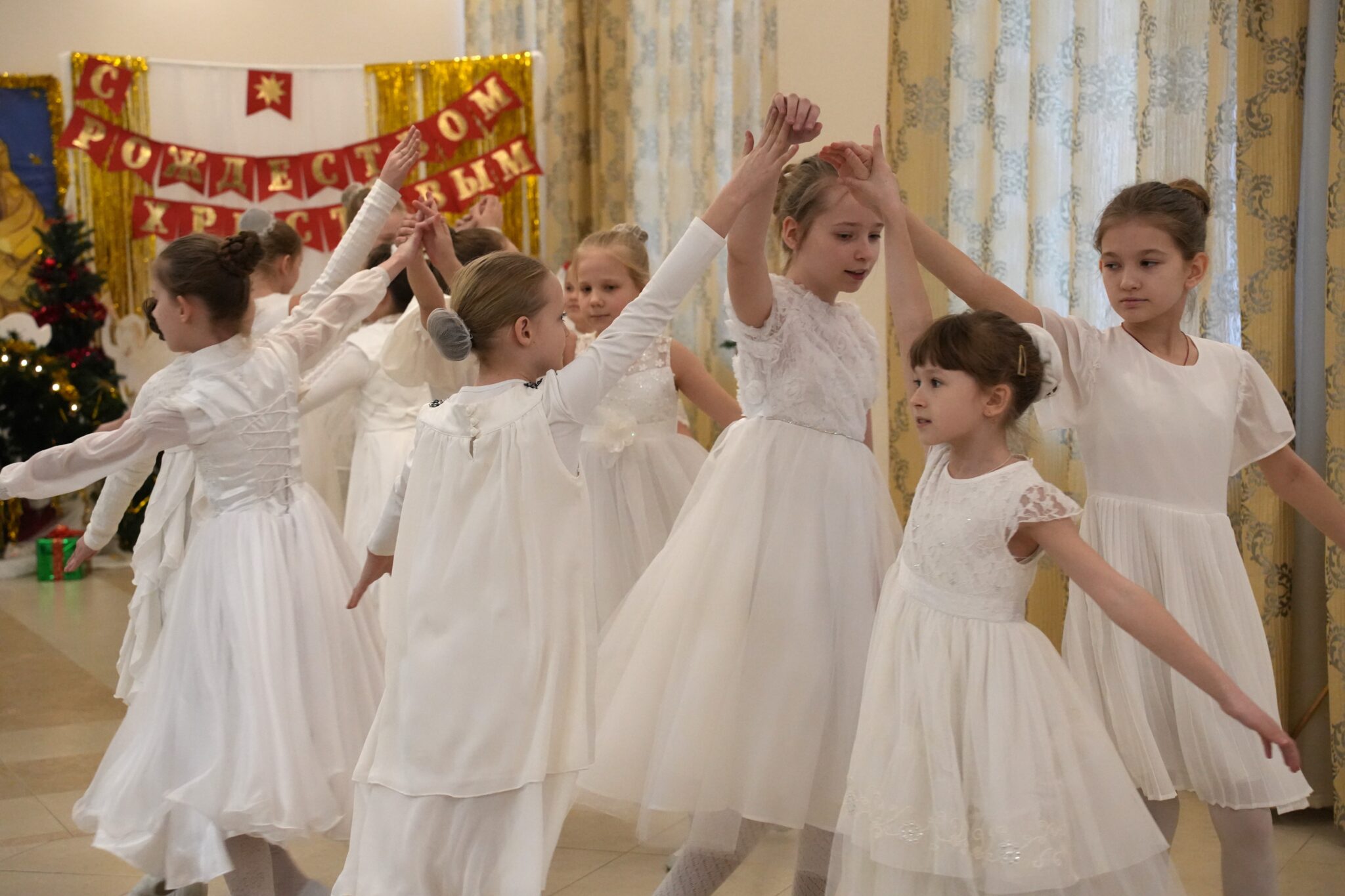 Праздничный спектакль «Рождественская история», который представили учащиеся вместе с педагогами, повествовал о семейных Рождественских традициях, о дружбе, об отношениях в семье, об умении прощать друг друга и родительской любви к детям. Во время театрального действия звучали Рождественские песнопения, исполнялись хореографические номера.