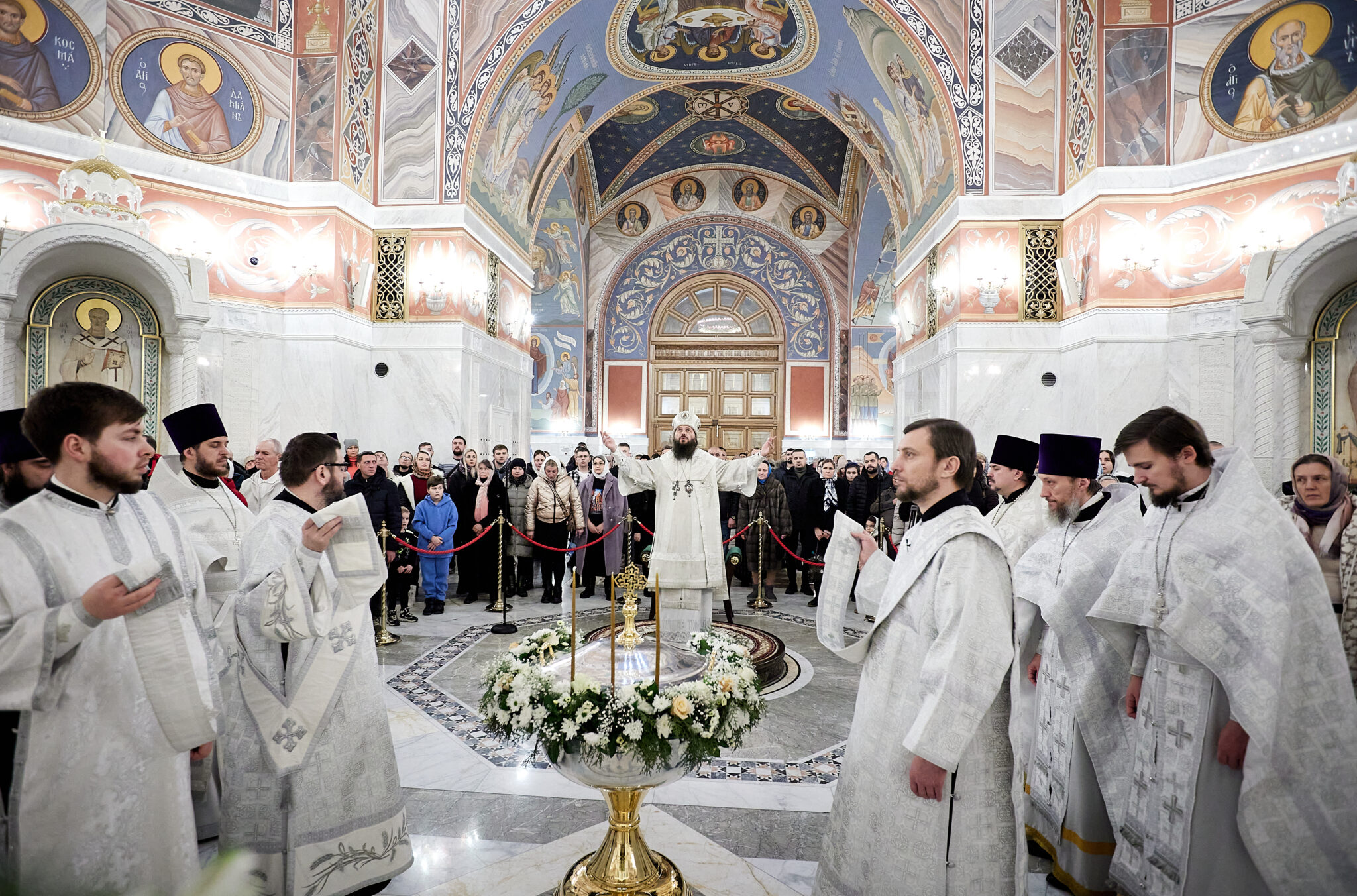 После Божественной литургии митрополит Феодор совершил чин Великого освящения воды. Это особый чин, во время которого воспоминается Евангельское событие, ставшее освящением самого естества воды через погружение в нее Бога во плоти.