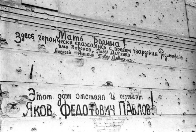 Осенью 1946 г. Я.Ф. Павлов приехал в Сталинград и посетил дом, который он оборонял. Тогда в одной из комнат здания жил мальчишка, а ныне известный археолог, профессор Владислав Мамонтов. Он вспоминает: «Павлов был в темном суконном офицерском кителе со стоячим воротником. На серебристых погонах – по одной звездочке, значит, младший лейтенант. На левой стороне груди – Звезда Героя Советского Союза и два небольших ряда орденских колодок. А. Черкасова с простой гладкой прической, в белом берете. Она одета уже по-осеннему в светлое платье и темную кофту. Они оба были явно смущены таким вниманием, тихо переговаривались друг с другом и старались точно выполнять требования киношников, которые не очень-то церемонились с ними. … Потом Я. Павлов и А. Черкасова медленно подошли к четвертому подъезду. Здесь на стене дома через трафарет был заранее накрашен текст о том, что Черкасова сдала, а Павлов принял восстановленный исторический дом. Они расписались на стене».
