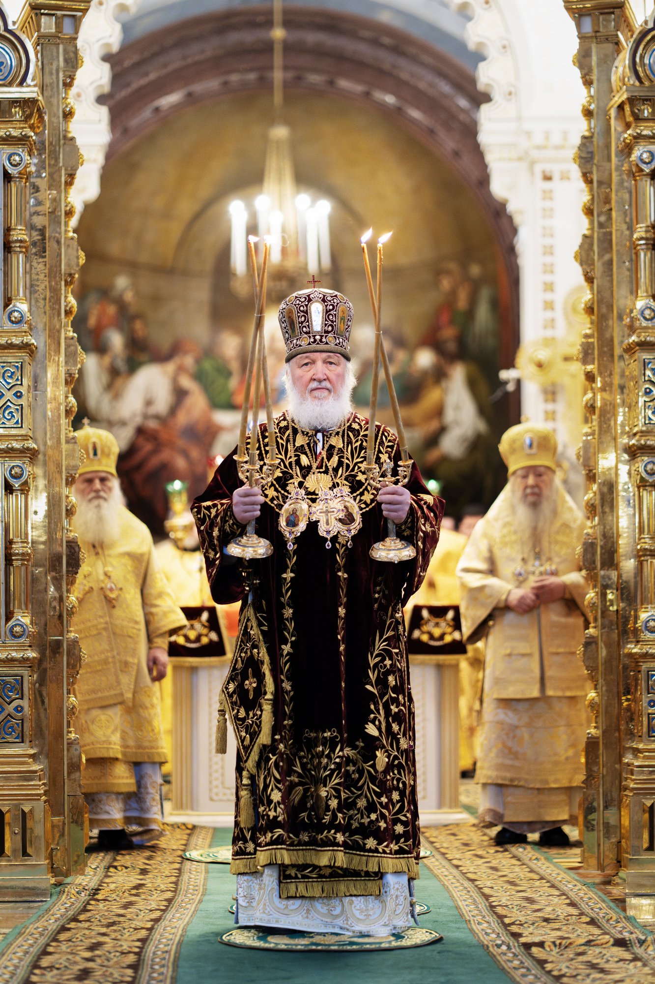 В этот знаменательный день Святейший Патриарх Кирилл совершил в интронизационных облачениях Божественную литургию в кафедральном соборном Храме Христа Спасителя в Москве.