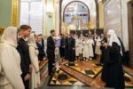 В заалтарной галерее Храма Христа Спасителя Святейшего Владыку с 15-й годовщиной интронизации поздравили участники движения «Патриаршие добровольцы».