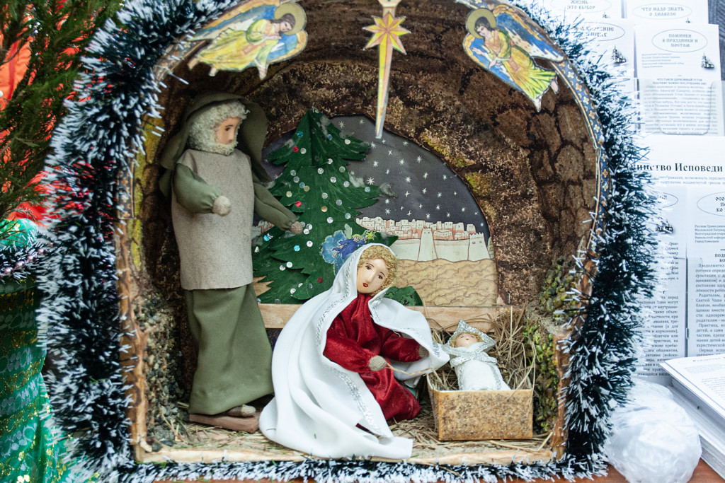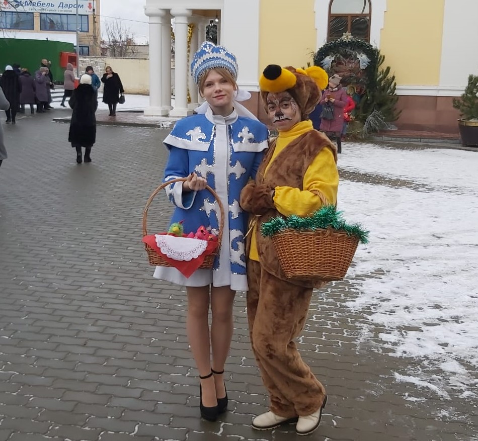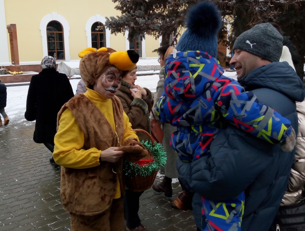 После праздничной Божественной литургии 7 января прихожан в притворе Никольского храма встречали сказочные персонажи — Снегурочка и Медвежонок. Они поздравляли всех с Рождеством Христовым, детям вручали маленькие подарки: наклейки, значки, конфеты. Прихожане фотографировались во дворе собора рядом с вертепом, просили попозировать на камеру Снегурочку и Медвежонка.