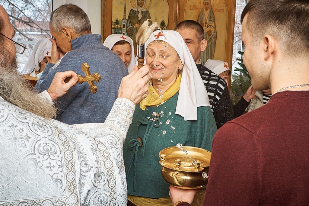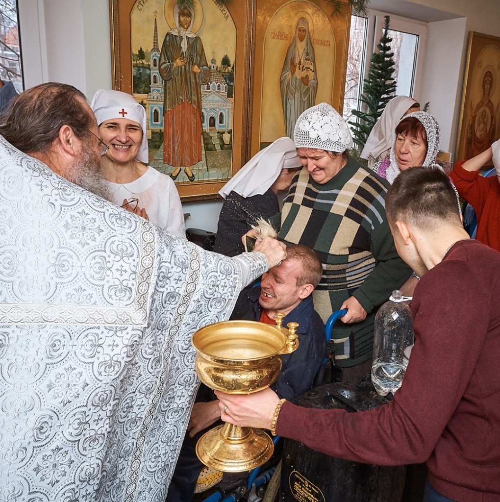 На приходе больничного храма блаженной Ксении Петербургской в доме престарелых и инвалидов в праздник Крещения Господня состоялась Божественная литургия. Ее возглавил отец Николай (Дранников). Богослужение сопровождалось пением хора сестер милосердия Свято-Елисаветинского сестричества. Также был совершен чин великого освящения воды, а затем батюшка с сестрами и прихожанами храма навестили тех людей, которые по своим немощам не смогли разделить радость совместной молитвы.