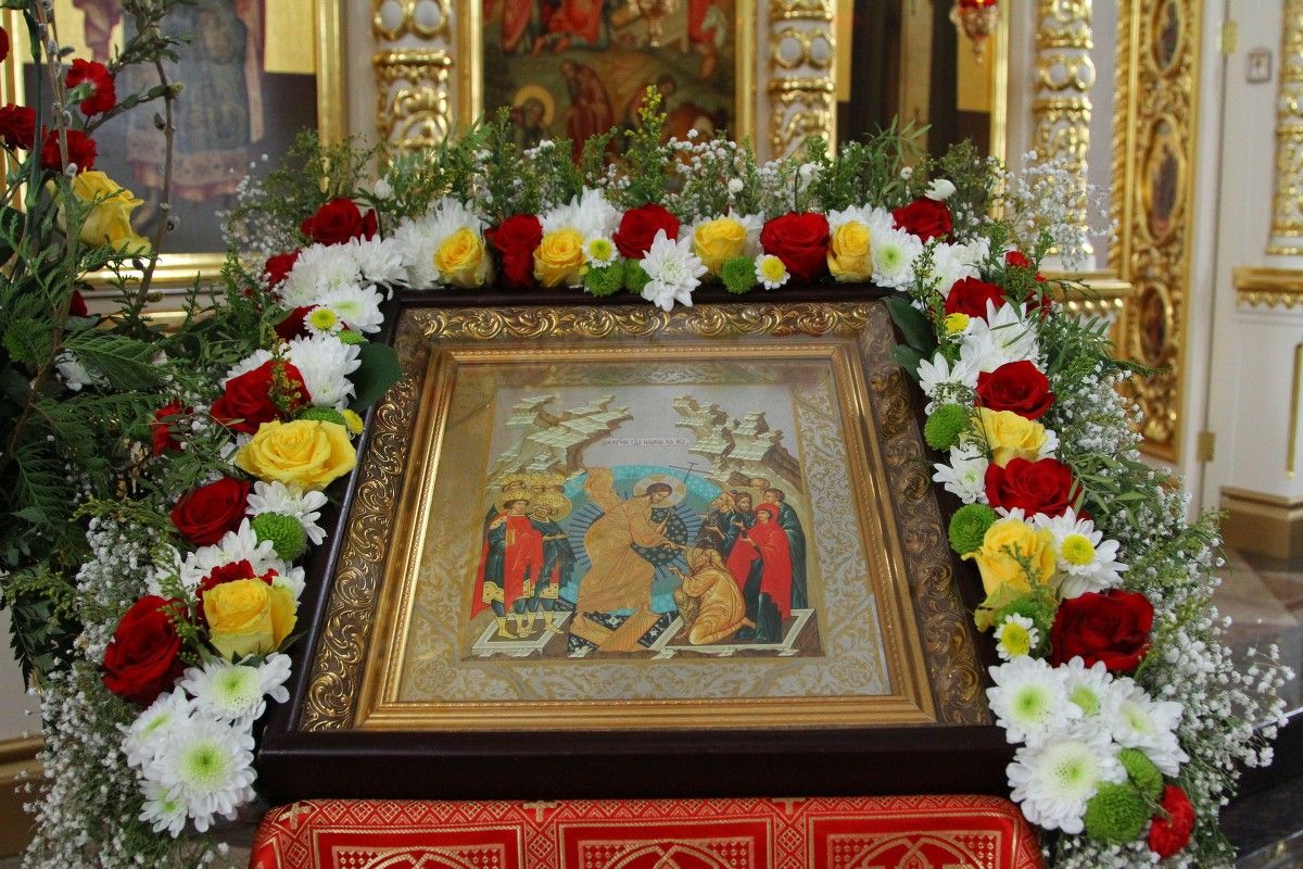Богослужебные песнопения исполнил хор Никольского собора под управлением регента Любови Михеевой. По окончании Литургии был совершен крестный ход вокруг храма.