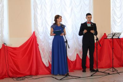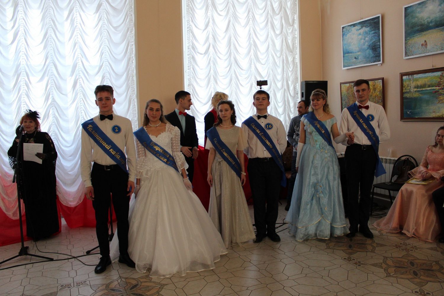 Ведущие – Алина Иванова и Владимир Князев – представляют участникам бала членов жюри и его председателя Л.М. Кондрашеву.