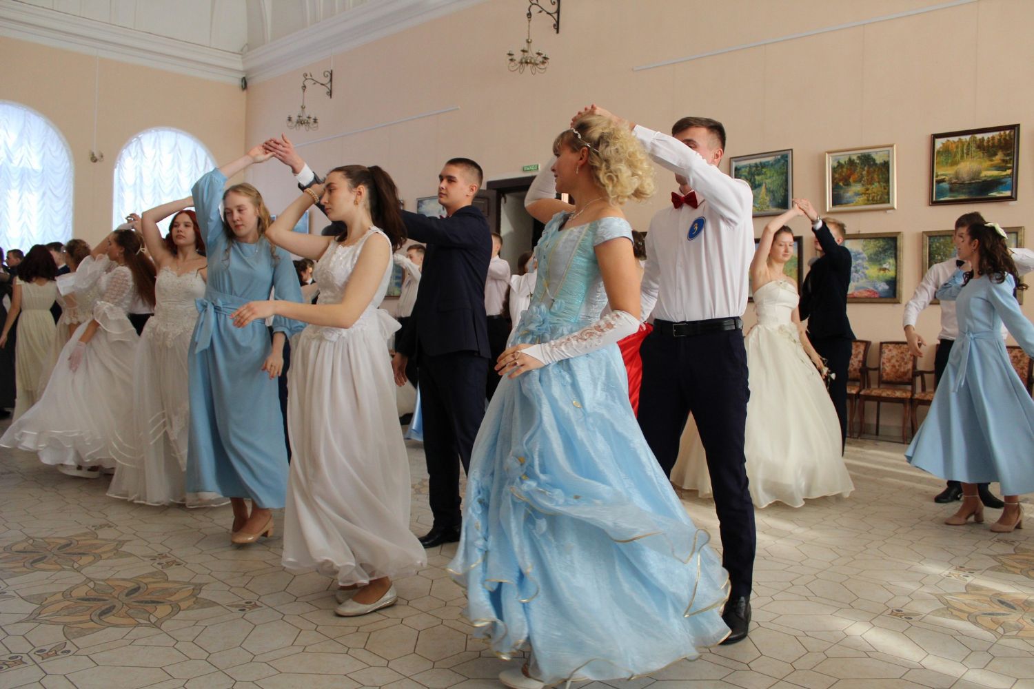 К назначенному часу в картинной галерее замка собрались участники бала: учащиеся старших классов Юринской, Марьинской, Васильевской, Юркинской средних общеобразовательных школ. В этом году собралось 28 пар из школ, одна из них – пара рабочей молодежи. Почетные гости бала занимают свои места. Звучит полонез, и в зал входят молодые люди в бальных нарядах. Невольно все присутствующие переносятся в другое время…