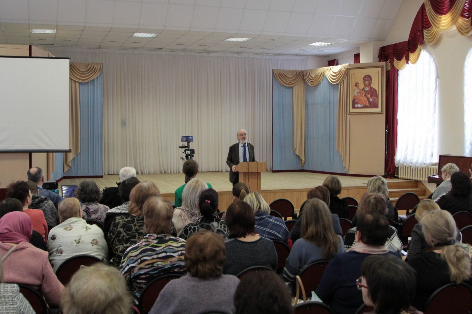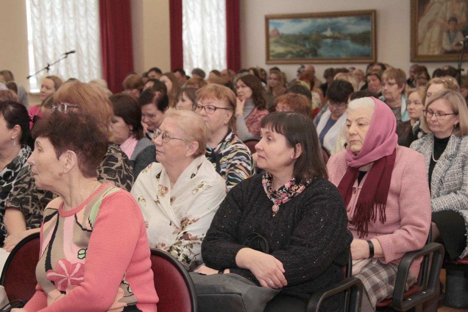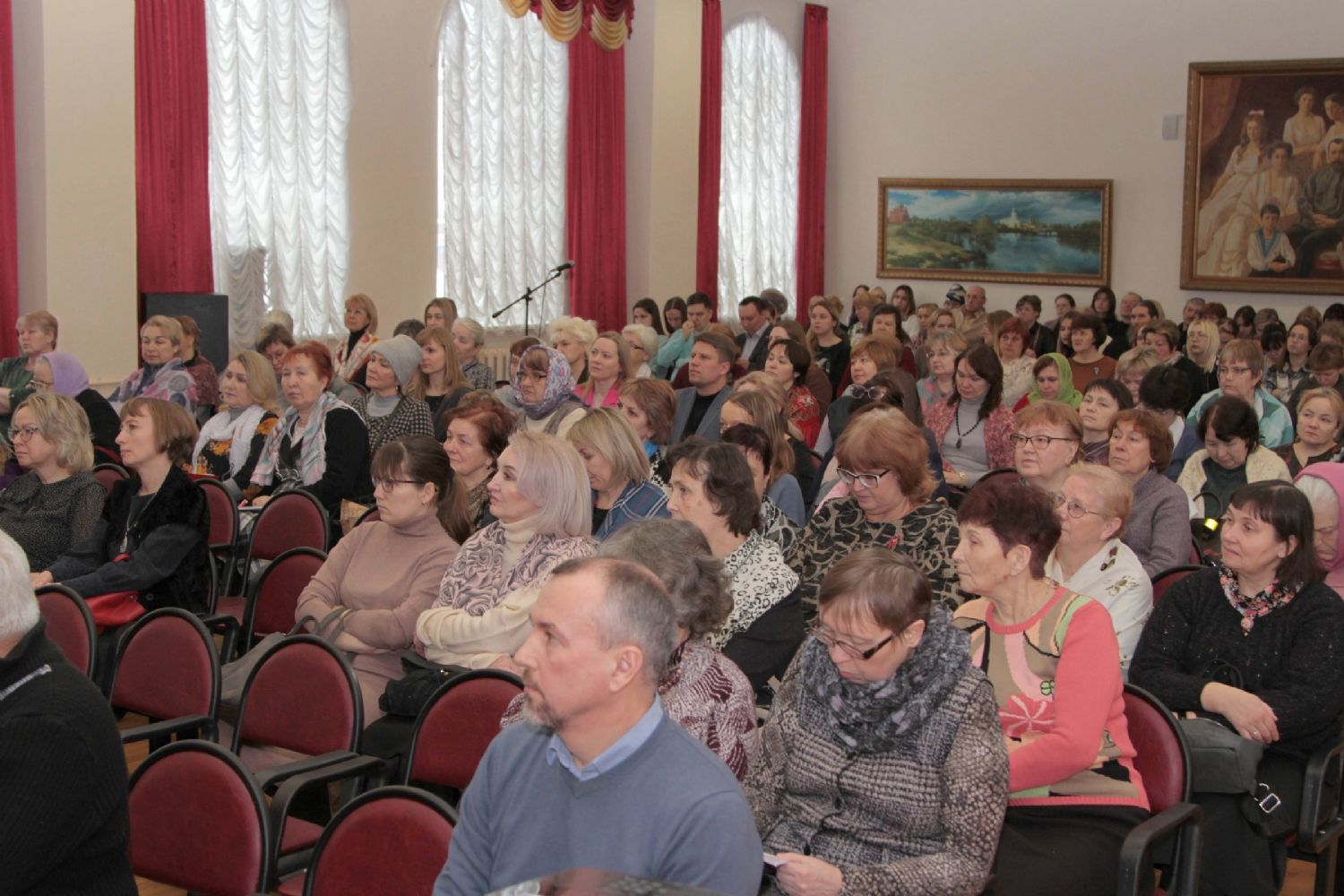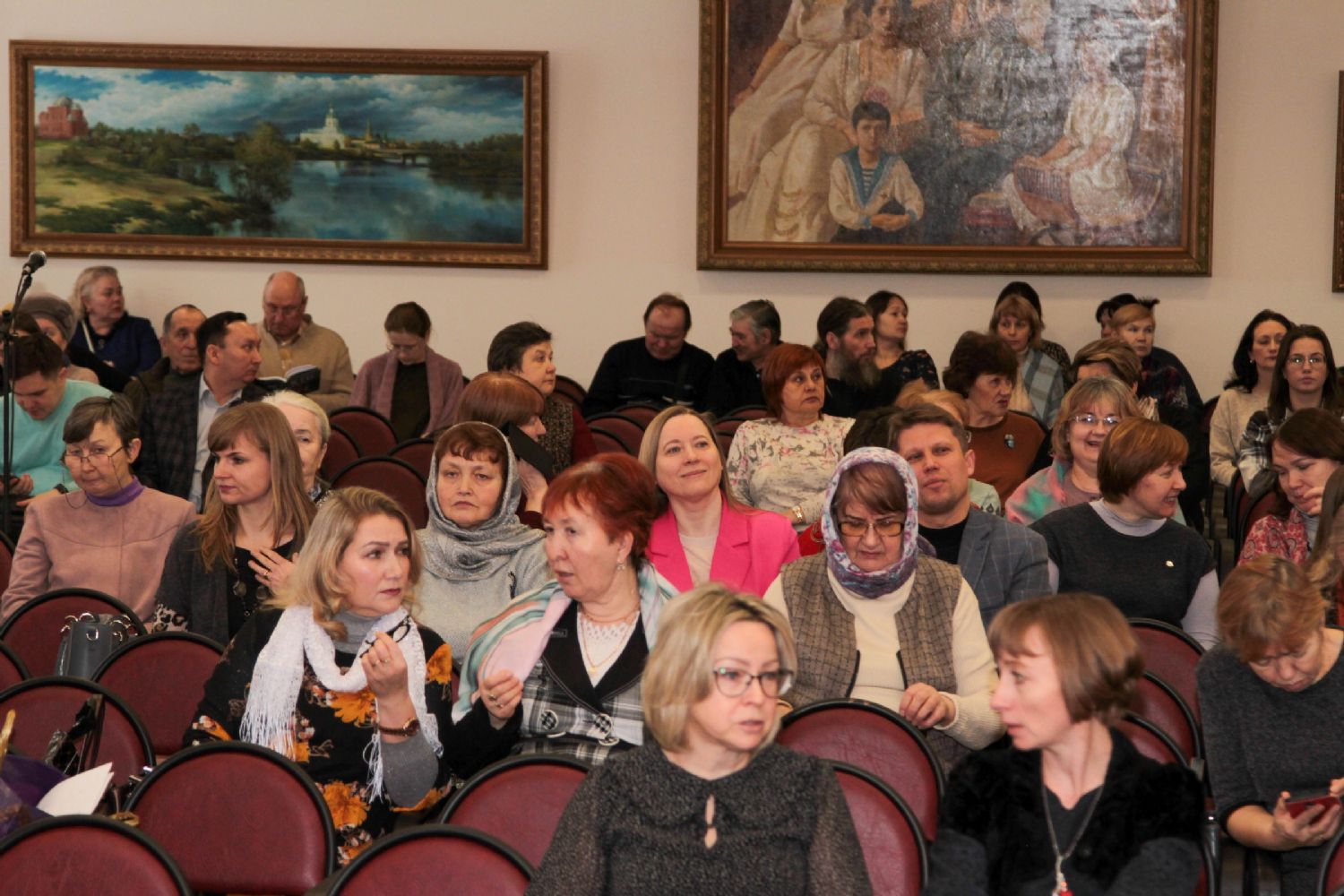 В актовом зале центра собрались представители педагогического сообщества, священнослужители, работники культуры, в том числе члены Общества духовно-нравственного развития жителей Марий Эл. Встреча была построена в форме диалога с собравшимися.